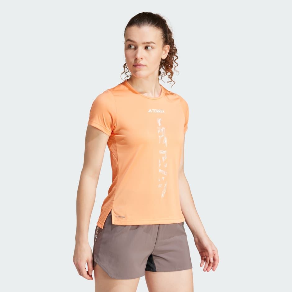 Muddy or dusty, rocky or smooth â follow the trail wherever it leads in this adidas trail running t-shirt. AEROREADY absorbs moisture to help you stay dry on the uphill climb. Airy fabric on the back keeps the air flowing underneath your pack.