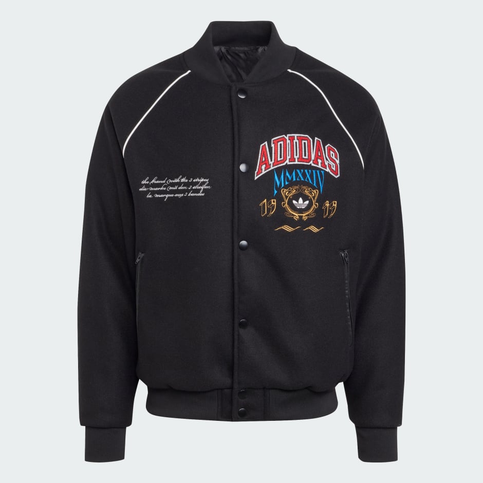 An instant classic with a story to tell. This adidas VRCT jacket nods to our collegiate roots with a casual shape and ribbed cuffs that keep the loose silhouette in check. The soft, durable material is all about comfort, keeping you feeling good wherever the day finds you. Not really about subtlety, the front of the jacket is signed off with different badges to bring in a pop of bold colour.